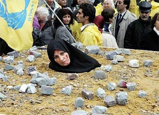 Não, não é a primeira mulher a ser condenada à lapidação por adultério, no Irão (onde há mais 11 a aguardar a mesma execução) e fora do Irão. Não, não é novidade haver mulheres lapidadas por "relações sexuais ilícitas", algumas delas crianças, algumas delas vítimas de violação. Há imagens dessas execuções na Net, descrições atrozes que nos parecem mentira. Aliás tudo isto parece impossível de tão bárbaro, tão de outro mundo - um mundo onde se mata com pedras nem muito grandes nem muito pequenas para que a agonia dure, onde uma mulher pode ser o alvo de um jogo de acerta e mata por causa desta palavra, adultério, desta noção de que as mulheres são o mal e o corpo do diabo, feitas para castigo e submissão.» [DN]